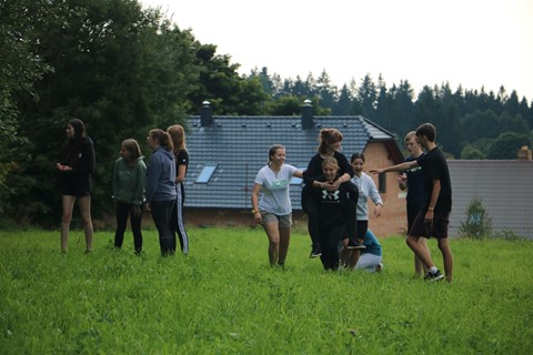 Po zabydlení se a uvítacím obědě se program odvíjel ve směru různorodých činností, které zahrnovaly jak pohybové aktivity, tak i činnosti méně akční. Cílem bylo jediné, seznámit se, a to nenásilně a zajímavou formou, a v rámci možností si propojit obličeje se jmény. Tyto hry nám zabraly téměř celé odpoledne a ke konci dne už nebylo oslovit někoho jménem tak těžké. Ještě před setměním si žáci připravili krátké scénky a příběhy složené z vylosovaných slov a předvedli tak svou fantazii, kreativitu, ale i smysl pro drama či humor.