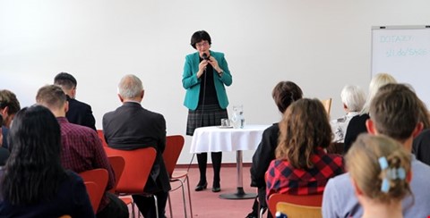 Odpolední program pro studenty zahájila předsedkyně Akademie věd ČR, prof. RNDr. Eva Zažímalová. CSc. Její zajímavý životní příběh a cesta k úspěchu zaujala i pobavila všechny přítomné. Zároveň ale donutila i k zamyšlení nad tím, jak obtížné bylo pro některé lidi studovat před rokem 1989 obor, o který se zajímali.