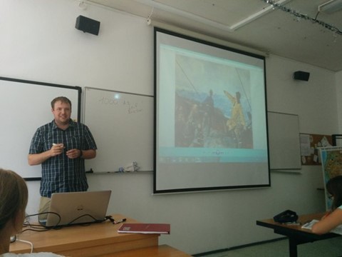 On 3rd September we spent a special English lesson with a native speaker Mr. Daniel Schneiter from the USA. He had prepared a presentation for us about the history of his country. He introduced us significant dates and showed us some pictures of important historical events and famous people, like presidents. At the end, we discussed various questions with him. We enjoyed this lesson, because Daniel was funny and we are looking forward to his next visit.
