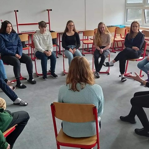 15.března nás navštívila paní lektorka z Tandemu a strávila s našimi němčináři z nižšího gymnázia i prvních ročníků hodinu plnou her a zábavy. Tento projekt s příhodným názvem "Němčina nekouše" měl naše studenty motivovat ke studiu němčiny a ukázat jim, že přestože němčina patří mezi jazyky se složitější gramatikou, je určitě i zábavná a hlavně v mnoha ohledech pevně spjatá s naší zemí v dobách dávných i v současnosti.