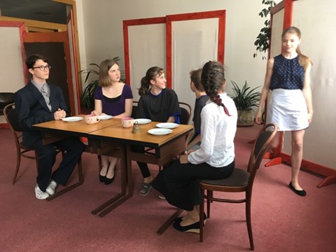 Paní profesorka Jitka Stráská nastudovala s Davidem, Anežkou, Pavlem, Honzou, Ondrou, Bernadetou, Lindou, Šarlotou a Petrou ze sekundy hru Cantervillské strašidlo Oscara Wilda. Studenti si nejenom sami navrhli a přinesli kostýmy a dekorace, ale s paní profesorkou Stáňou Wasserbauerovou ve výtvarné výchově nakreslili kulisy k představení. Hudbu pak zpracovali Pavel a Ondra z mediálního kroužku paní profesorky Simony Kadlčíkové.