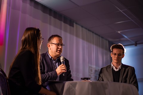 Studenti se ptali na informace ohledně natáčení Otázek a Fokusu Václava Moravce, na jeho školní léta i na názor na stav českého školství…