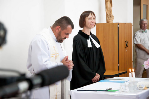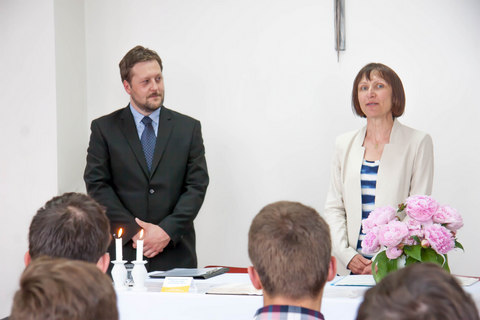 Sešli jsme se ve školní kapli, kde se v úvodu konala ekumenická bohoslužba pod duchovním vedením spirituála školy P. Jana Davida a laické kazatelky Českobratrské církve evangelické v Sázavě paní Ilony Mužátkové.