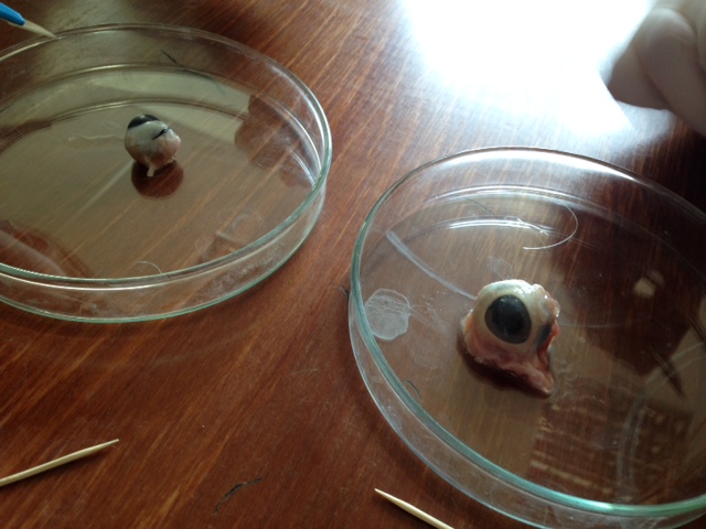 Díky daru studentů Ondry Maška z kvinty a Natálie Křesťanové ze sexty se mohly pitvat oči z poražených prasat a krav z jatek.