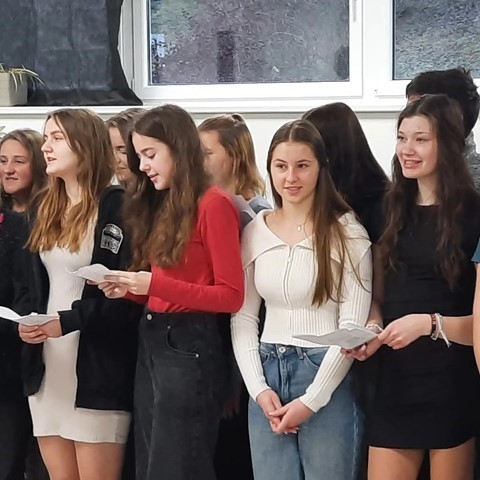 I letos v adventním čase jsme se již tradičně sešli v jídelně, abychom si společně zazpívali a poslechli koledy v cizích jazycích, které se vyučují na naší škole.