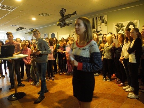 Zazněly dvě ruské a dvě německé koledy. Pak následovala koleda francouzská, kterou si připravila studentka kvarty Bára Cočevová. Na závěr si studenti společně zazpívali českou koledu „Narodil se Kristus Pán”, kterou na housle krásně zahráli Dominik Verner a Magda Ledvinková a na klarinet Marek Šiller, Lukáš Kliment a Pepa Řetický.