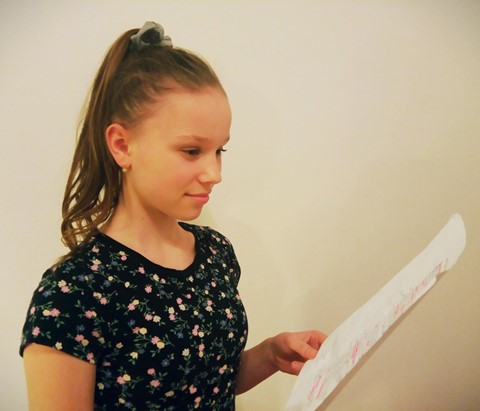 Klárka Kynclová z tercie se učí německy teprve pár měsíců a už zkusila své štěstí v přednesu německého textu. Při online výuce se svou němčinářkou Mgr. Lenkou Havlíkovou připravily dramatizaci německého textu, následně ji natočily jako video a poslaly do soutěže. Společně s Klárkou se soutěže ve vyšší kategorii zúčastnila i skupinka studentů z kvarty.